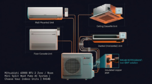 Mitsubishi 42000 BTU Single Zone Mini Split Heat Pump AC System | Up To 21 SEER2 | Light Commercial | Choose Your Indoor Unit | R454B