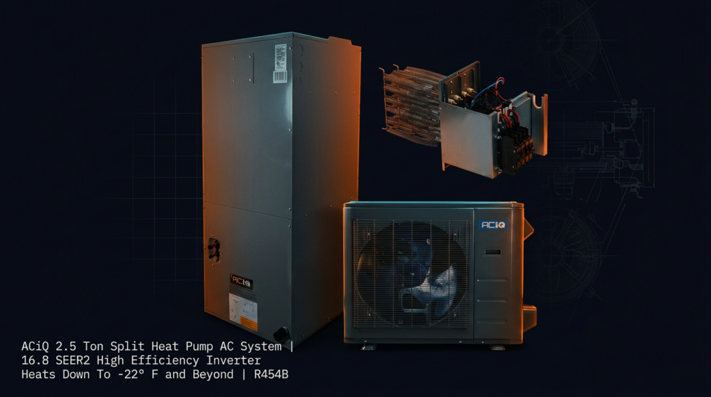 ACiQ 2.5 Ton Split Heat Pump AC System | 16.8 SEER2 High Efficiency Inverter Heats Down To -22° F and Beyond | R454B