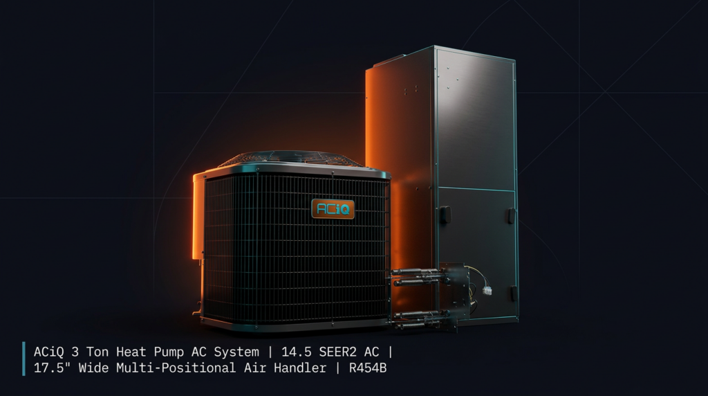 ACiQ 3 Ton Heat Pump AC System | 14.5 SEER2 AC | 17.5″ Wide Multi-Positional Air Handler | R454B