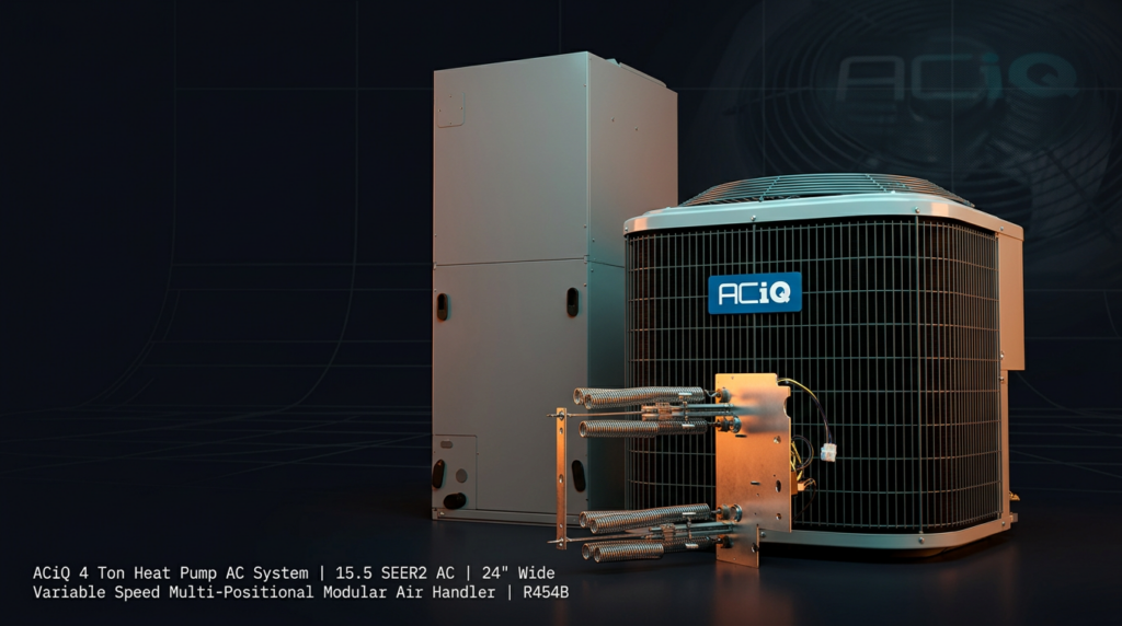 The ACiQ 4 Ton Heat Pump AC System with R454B refrigerant delivers efficient heating and cooling for larger homes and multi-room applications. This system pairs the R5H5S48AKAAA condenser with the FTMA5B60L0DA air handler to provide up to 16.0 SEER2 efficiency and reliable year-round performance. Built for demanding climates, this unit combines rugged construction with advanced compressor protection and quiet operation.