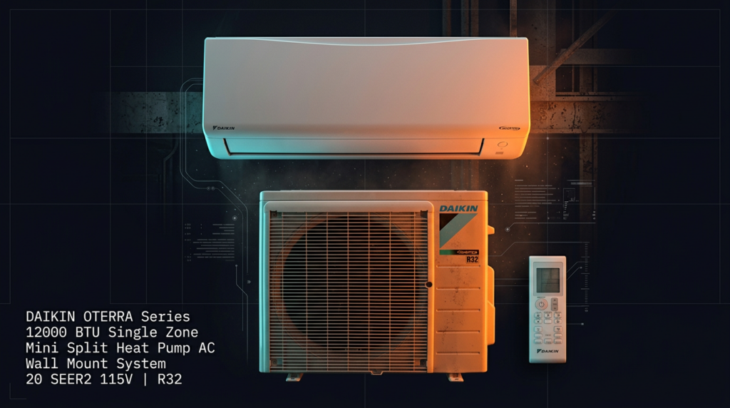 The Daikin 12000 BTU Single Zone Mini Split Heat Pump AC Wall Mount System (OTERRA Series) delivers year-round heating and cooling in a compact, energy-efficient package. Ideal for homeowners and contractors looking to condition individual rooms or additions, this 20 SEER2 rated system uses R32 refrigerant and operates on standard 115V power for easy installation without specialized electrical upgrades.