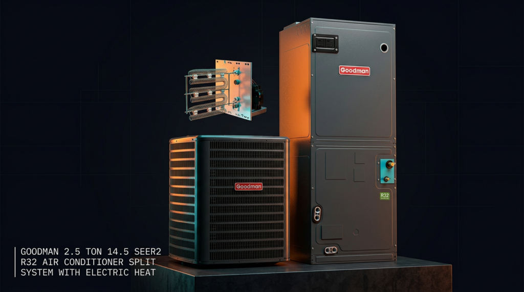 The Goodman 2.5 Ton 14.5 SEER2 R32 Air Conditioner Split System delivers high-efficiency cooling with electric heat in a compact, ready-to-install configuration. This system combines an advanced Copeland compressor with R32 refrigerant optimization, making it ideal for retrofit applications and new installations where energy efficiency matters. The complete package arrives fully charged for 15 feet of tubing, reducing installation time and complexity.