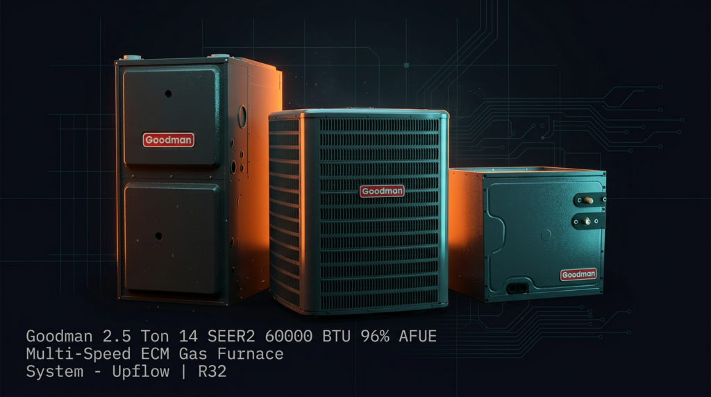 Goodman 2.5 Ton 14 SEER2 60000 BTU 96% AFUE Multi-Speed ECM Gas Furnace System – Upflow | R32
