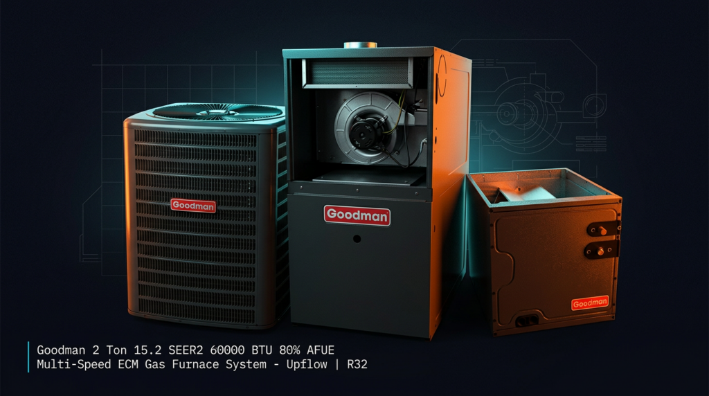 Goodman 2 Ton 15.2 SEER2 60000 BTU 80% AFUE Multi-Speed ECM Gas Furnace System – Upflow | R32
