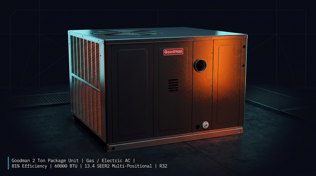 Goodman 2 Ton Package Unit Gas / Electric AC – 81% Efficiency 60000 BTU | 13.4 SEER2 Multi-Positional | R32