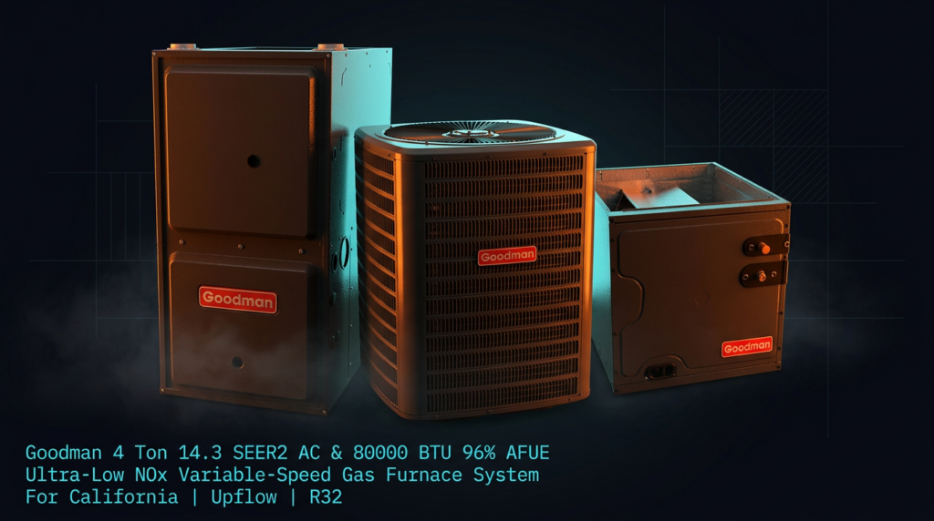 Goodman 4 Ton 14.3 SEER2 AC & 80000 BTU 96% AFUE Ultra-Low NOx Variable-Speed Gas Furnace System For California | Upflow | R32