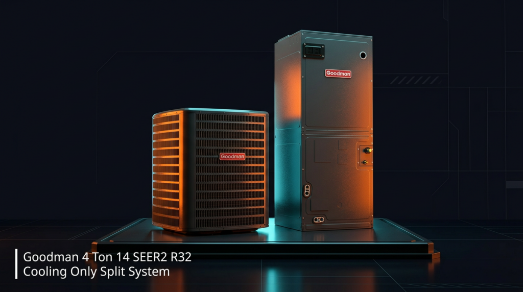 The Goodman 4 Ton 14 SEER2 R32 Cooling Only Split System is an energy-efficient air conditioning solution designed for homeowners and contractors seeking reliable cooling performance with modern refrigerant technology. This system pairs the GLXS4BA4810 condenser with the AMST48CU1300 air handler and delivers efficient operation using R-32 refrigerant. The unit offers solid cooling capacity at a competitive price point for residential applications.
