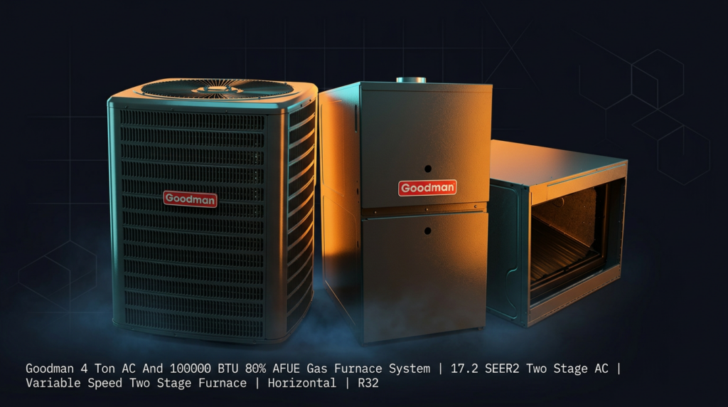 Goodman 4 Ton AC And 100000 BTU 80% AFUE Gas Furnace System | 17.2 SEER2 Two Stage AC | Variable Speed Two Stage Furnace | Horizontal | R32