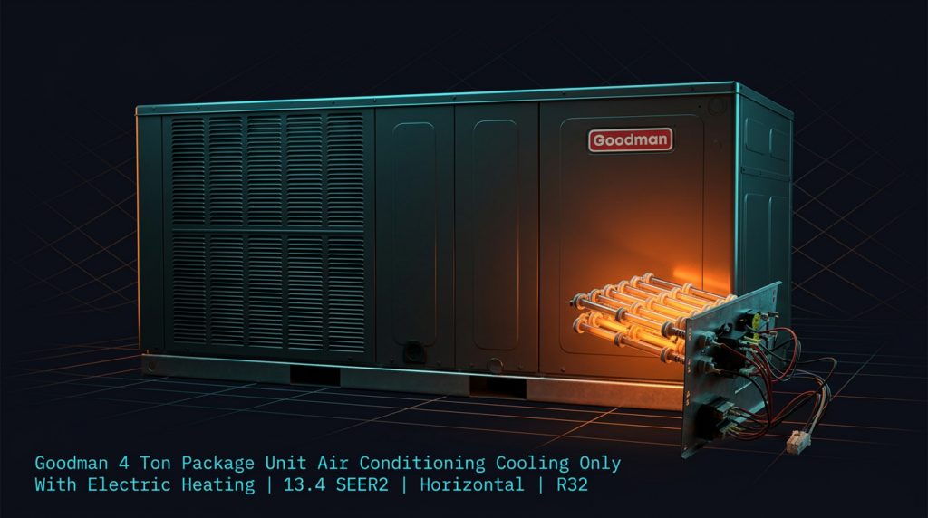 Goodman 4 Ton Package Unit Air Conditioning Cooling Only With Electric Heating | 13.4 SEER2 | Horizontal | R32
