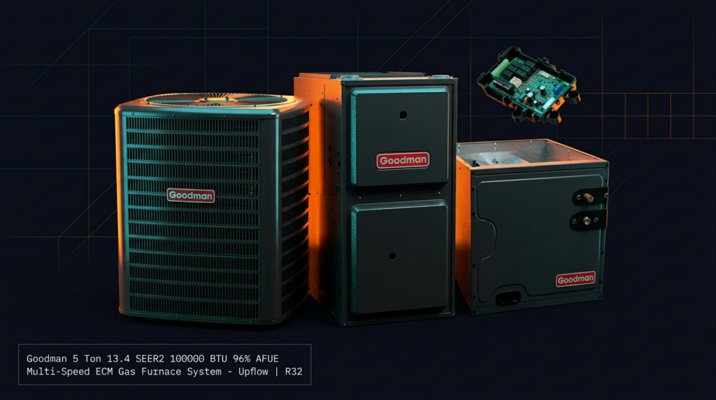 Goodman 5 Ton 13.4 SEER2 100000 BTU 96% AFUE Multi-Speed ECM Gas Furnace System – Upflow | R32