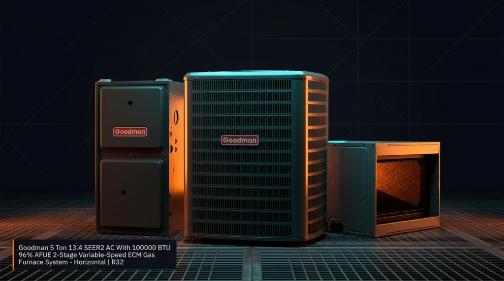 Goodman 5 Ton 13.4 SEER2 AC With 100000 BTU 96% AFUE 2-Stage Variable-Speed ECM Gas Furnace System – Horizontal | R32
