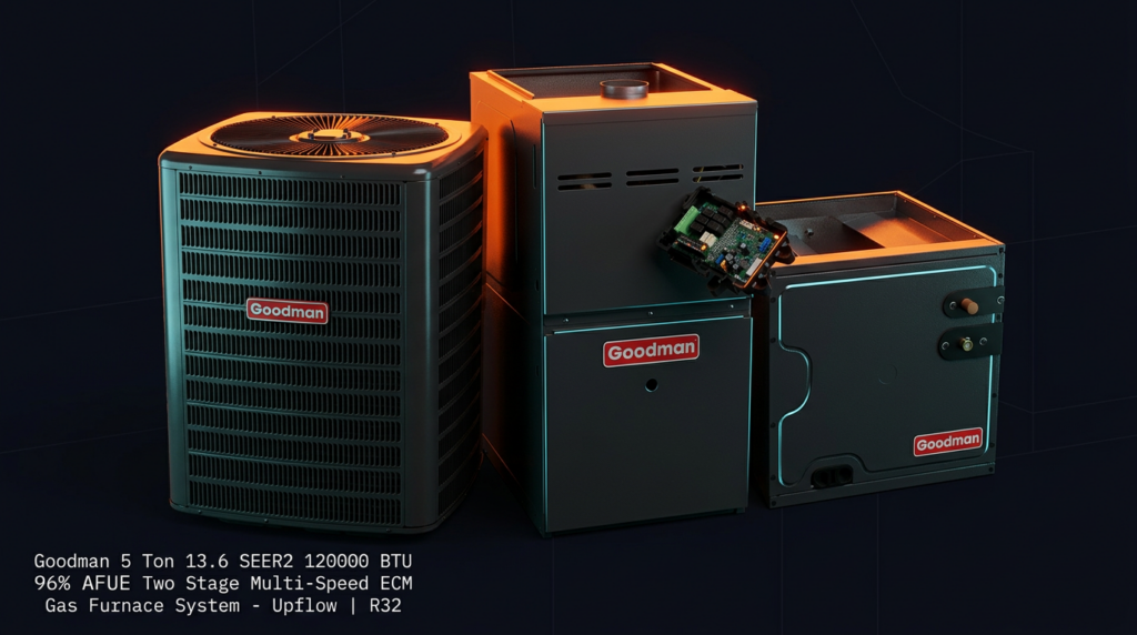 Goodman 5 Ton 13.6 SEER2 120000 BTU 96% AFUE Two Stage Multi-Speed ECM Gas Furnace System – Upflow | R32