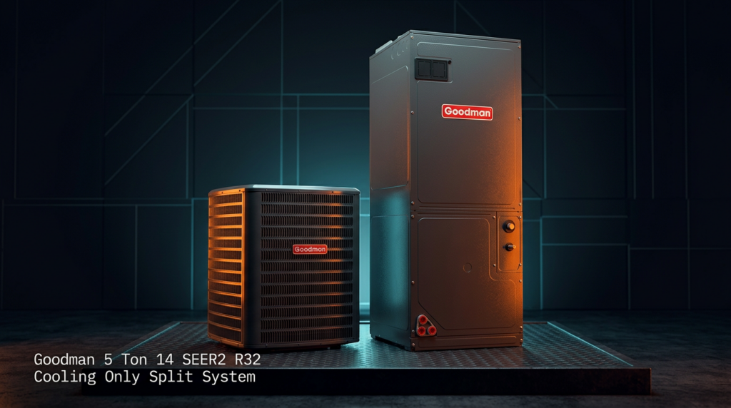 The Goodman 5 Ton 14 SEER2 R32 Cooling Only Split System delivers efficient single-stage cooling for residential and light commercial applications. This system pairs the GLXS4BA6010 condenser with the AMST60DU1300 air handler and is optimized for R32 refrigerant, offering reliable performance at a competitive price point for budget-conscious installations.