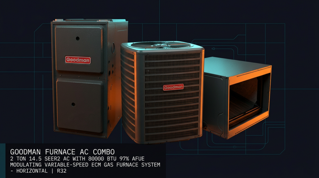 Goodman Furnace AC Combo – 2 Ton 14.5 SEER2 AC With 80000 BTU 97% AFUE Modulating Variable-Speed ECM Gas Furnace System – Horizontal | R32