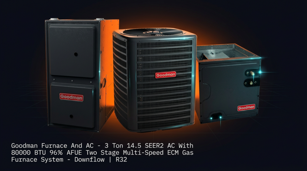 The Goodman 3 Ton 14.5 SEER2 system pairs a high-efficiency air conditioner with an 80,000 BTU two-stage furnace for year-round comfort. This R32-charged unit is ideal for homeowners seeking reliable performance with strong efficiency ratings and proven durability. The combination delivers quiet operation through multi-speed ECM technology and advanced heating controls.