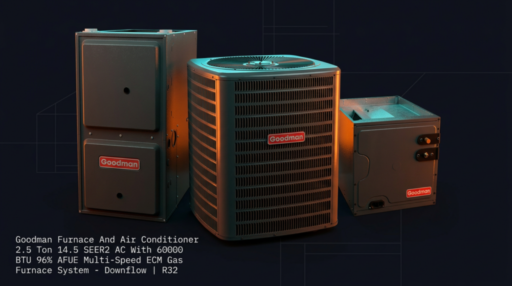 Goodman Furnace And Air Conditioner 2.5 Ton 14.5 SEER2 AC With 60000 BTU 96% AFUE Multi-Speed ECM Gas Furnace System – Downflow | R32