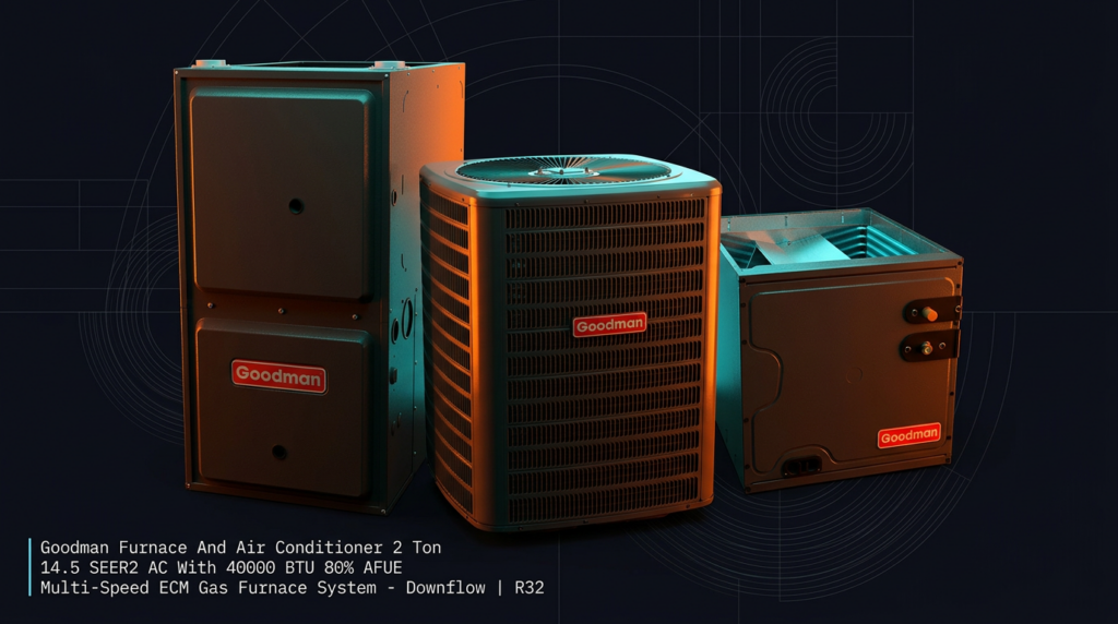 Goodman Furnace And Air Conditioner 2 Ton 14.5 SEER2 AC With 40000 BTU 80% AFUE Multi-Speed ECM Gas Furnace System – Downflow | R32