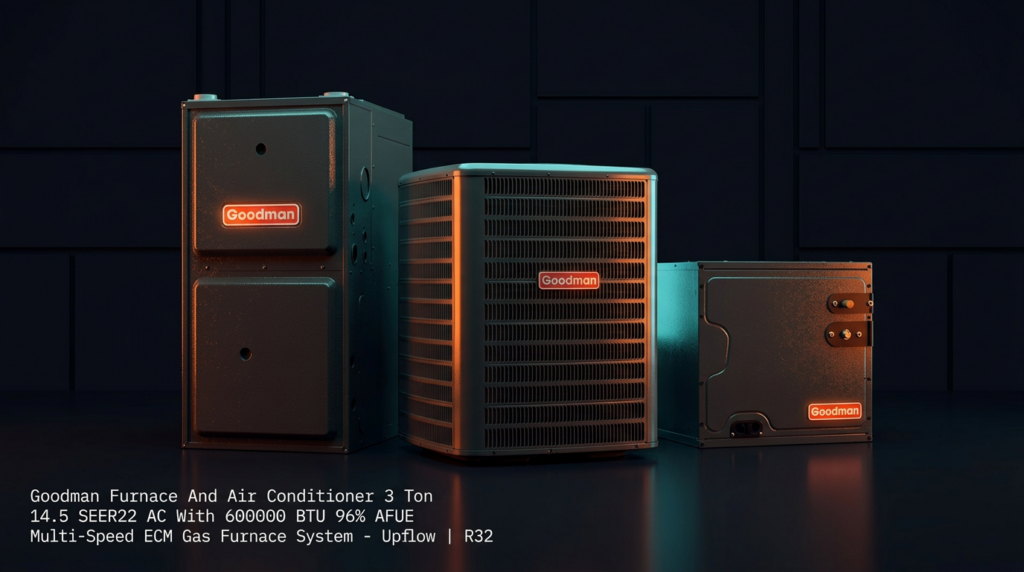 The Goodman 3 Ton 14.5 SEER2 system pairs a high-efficiency air conditioner with a 96% AFUE gas furnace for year-round climate control. This unit is designed for homeowners and contractors seeking reliable performance with R32 refrigerant technology and multi-speed ECM capability. The combination delivers solid efficiency ratings and factory-installed components ready for quick deployment.
