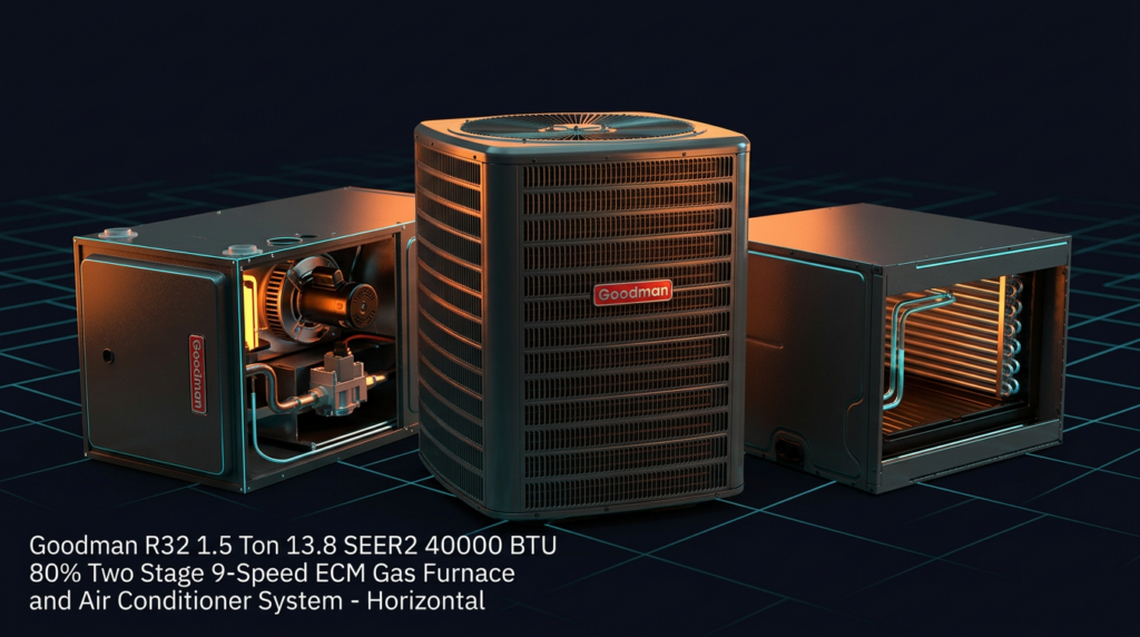 Goodman R32 1.5 Ton 13.8 SEER2 40000 BTU 80% Two Stage 9-Speed ECM Gas Furnace and Air Conditioner System – Horizontal