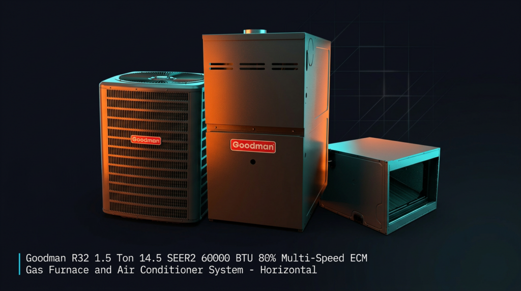 Goodman R32 1.5 Ton 14.5 SEER2 60000 BTU 80% Multi-Speed ECM Gas Furnace and Air Conditioner System – Horizontal