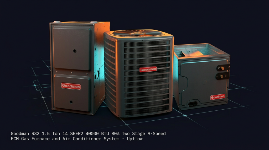 The Goodman R32 1.5 Ton 14 SEER2 Gas Furnace and Air Conditioner System delivers efficient heating and cooling for residential upflow applications. This matched system combines an 80% AFUE two-stage gas furnace with a 14 SEER2 air conditioner to reduce energy consumption and operating costs. The R32 refrigerant and advanced compressor technology make this unit suitable for homeowners and contractors seeking reliable performance at an accessible price point.