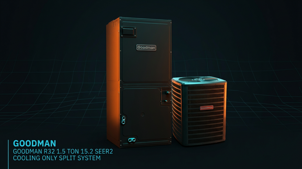 The Goodman R32 1.5 Ton 15.2 SEER2 Cooling Only Split System delivers high-efficiency cooling using environmentally friendly R-32 refrigerant. This system pairs the GLXS5B condenser with the AMST air handler and is designed for homeowners and contractors seeking reliable, energy-efficient cooling performance. The high SEER2 rating reduces operating costs while maintaining dependable comfort.