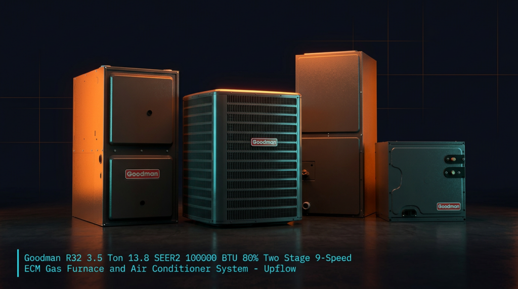 The Goodman R32 3.5 Ton 13.8 SEER2 Gas Furnace and Air Conditioner System delivers efficient heating and cooling for residential applications. This upflow configuration combines a two-stage gas furnace with an R32 air conditioning condenser, making it suitable for homeowners seeking energy-efficient operation with reliable performance. The system is fully charged for 15 feet of tubing and AHRI certified for dependable operation.