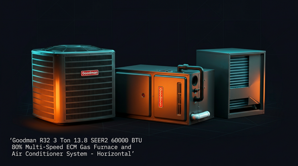 The Goodman R32 3 Ton 13.8 SEER2 horizontal system delivers 60,000 BTU cooling capacity with an 80% efficient gas furnace, making it suitable for residential applications requiring both heating and cooling. This AHRI-certified unit combines an energy-efficient R32 compressor with a multi-speed ECM blower motor to optimize efficiency and comfort. The horizontal configuration accommodates installations where upflow or downflow models cannot fit.