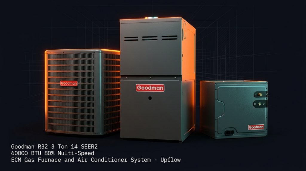 Goodman R32 3 Ton 14 SEER2 60000 BTU 80% Multi-Speed ECM Gas Furnace and Air Conditioner System – Upflow
