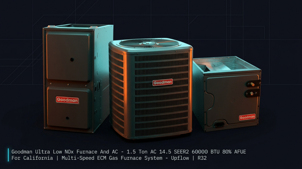 The Goodman Ultra Low NOx 1.5 Ton AC and Gas Furnace System delivers efficient heating and cooling for California homes while meeting strict SCAQMD air quality standards. This package pairs a 14.5 SEER2 R32 air conditioner with an 80% AFUE multi-speed ECM gas furnace to reduce energy costs and emissions. The system is fully charged and ready for installation with up to 15 feet of tubing length.