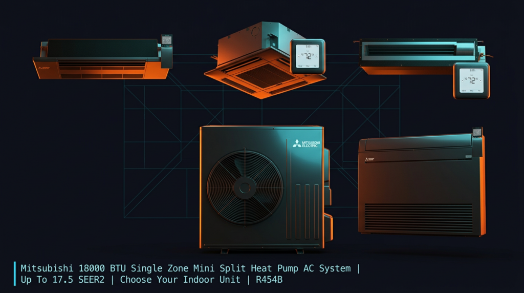 Mitsubishi 18000 BTU Single Zone Mini Split Heat Pump AC System | Up To 17.5 SEER2 | Choose Your Indoor Unit | R454B