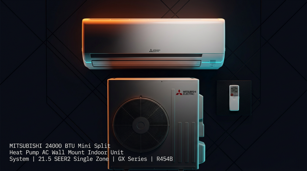 The Mitsubishi 24000 BTU Mini Split Heat Pump AC Wall Mount Indoor Unit System delivers efficient heating and cooling for single-zone applications with a 21.5 SEER2 rating. This GX Series system uses R454B refrigerant and is ideal for homeowners and contractors seeking reliable performance with advanced filtration technology. The inverter-driven compressor provides precise capacity modulation to match actual load requirements while minimizing energy waste.