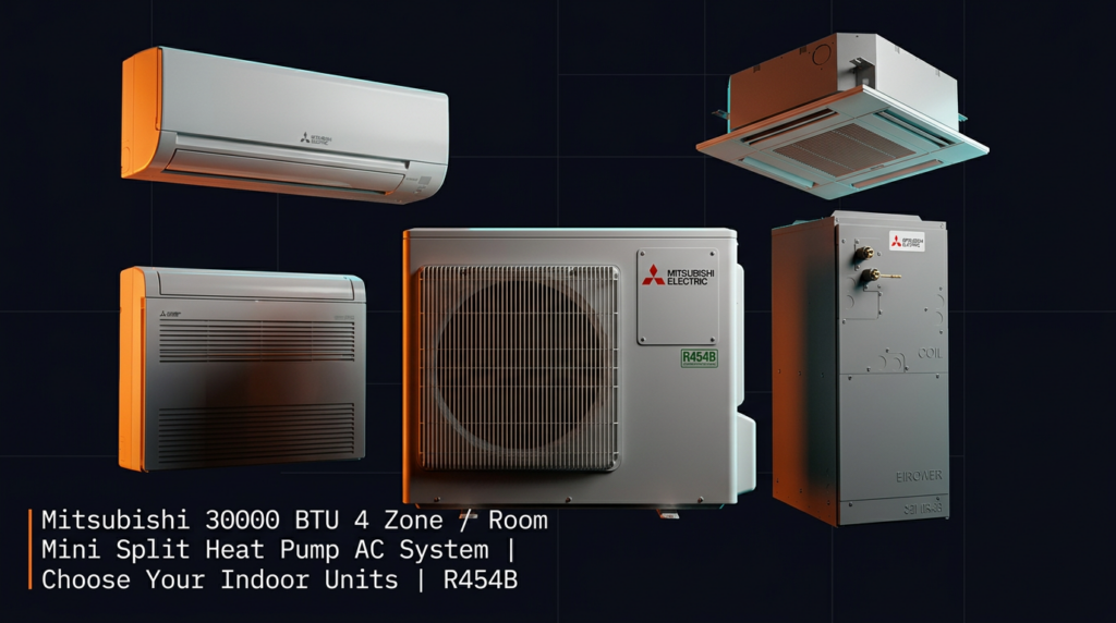 The Mitsubishi MXZ-4D30NL is a 30,000 BTU 4-zone mini split heat pump system designed for homeowners and contractors who need flexible climate control across multiple rooms or spaces. This outdoor unit connects to up to four indoor wall-mounted units, allowing independent temperature management in each zone. The system uses R454B refrigerant and advanced protection features to deliver reliable heating and cooling with minimal maintenance.