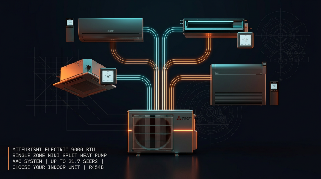The Mitsubishi SUZ-AA09NL is a 9,000 BTU single-zone outdoor unit designed for flexible indoor configuration. This system achieves up to 21.7 SEER2 efficiency and uses environmentally friendly R454B refrigerant. It’s ideal for homeowners and contractors who need customizable heating and cooling with proven reliability and corrosion resistance.