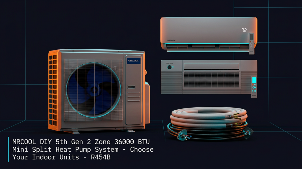 The MrCool DIY 5th Gen 2 Zone 36000 BTU Mini Split Heat Pump System delivers efficient heating and cooling for large homes and light commercial applications with multi-zone capability. This system pairs a 230V outdoor condenser unit with your choice of indoor wall-mounted air handlers, providing independent temperature control in up to two zones. The pre-charged Quick Connect line sets enable straightforward DIY installation without requiring a vacuum pump.