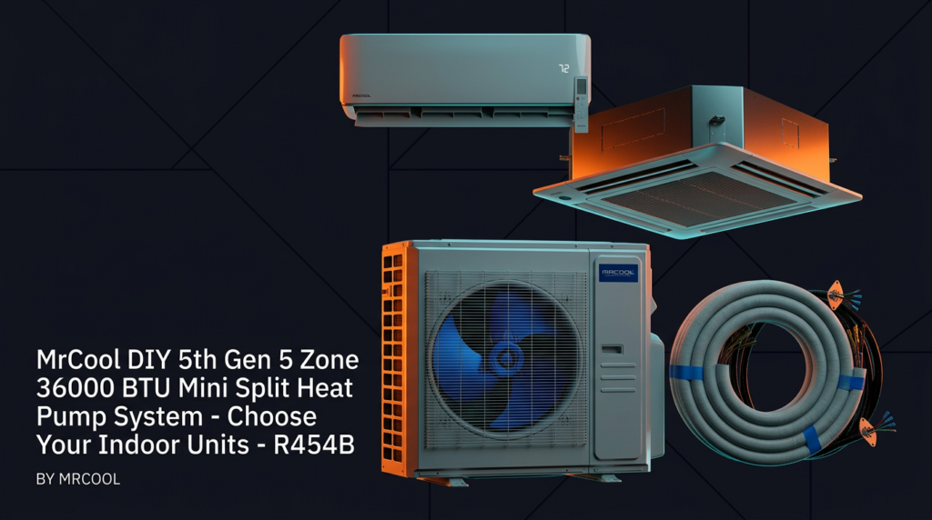 The MrCool DIY 5th Gen 36,000 BTU 5-Zone Mini Split Heat Pump System is a multi-zone ductless solution designed for large homes and light commercial applications requiring independent temperature control across up to five zones. This system pairs a fully-charged outdoor condenser with your choice of wall-mounted air handlers, delivering efficient heating and cooling without requiring vacuum service during installation. The variable-speed compressor and pre-charged Quick Connect line sets make this system accessible for both DIY installers and professional contractors.