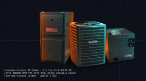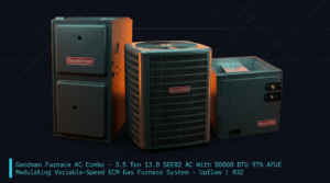 Goodman Furnace AC Combo – 4 Ton 13.5 SEER2 AC With 100000 BTU 97% AFUE Modulating Variable-Speed ECM Gas Furnace System – Upflow | R32
