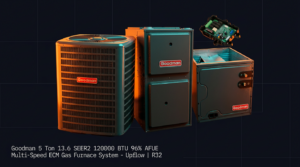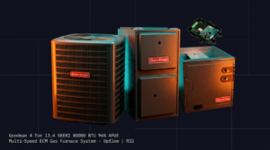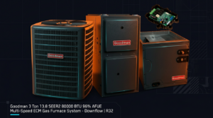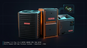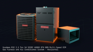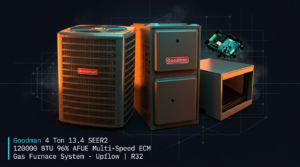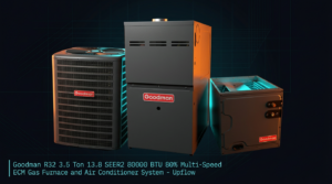Goodman R32 4 Ton 13.4 SEER2 100000 BTU 80% Multi-Speed ECM Gas Furnace and Air Conditioner System – Horizontal